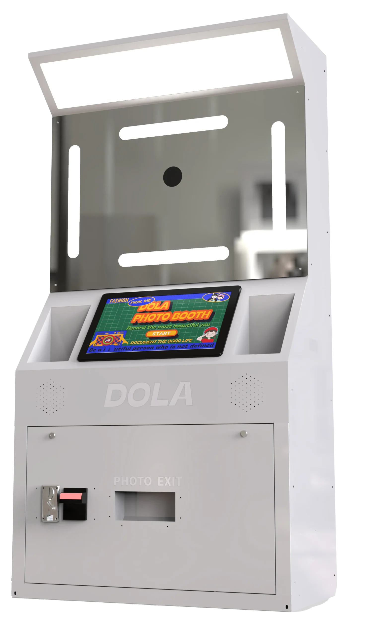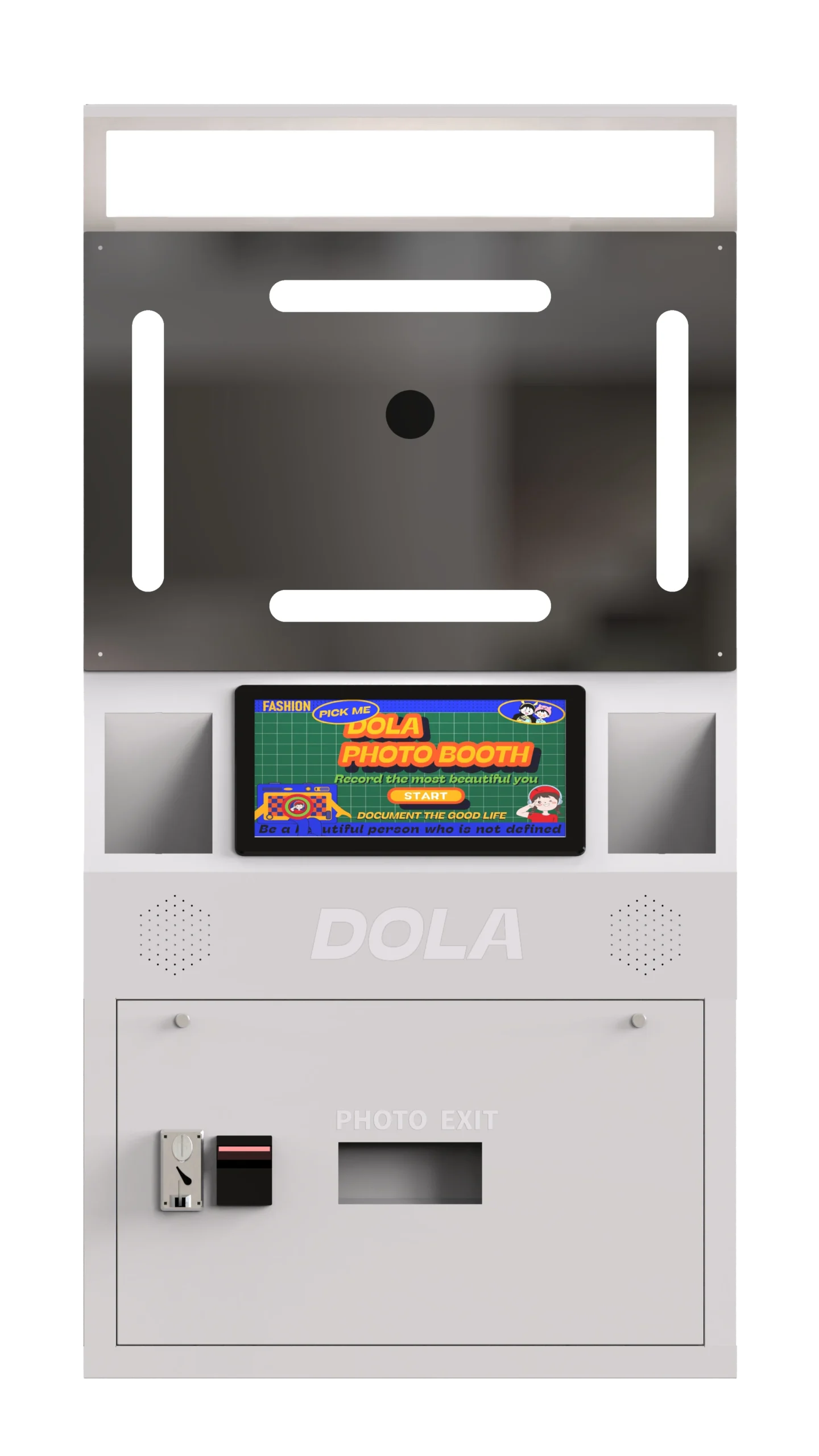 Introducing the **DOLA FOTO Mirror Fill Light Photo Booth**—a revolutionary upgrade over our Korean Style Photo Booth. This advanced model features a premium glass mirror integrated into the front of the machine, allowing users to monitor and perfect their poses in real time. The embedded fill light within the mirror ensures optimal illumination, delivering perfectly balanced lighting that enhances every shot.